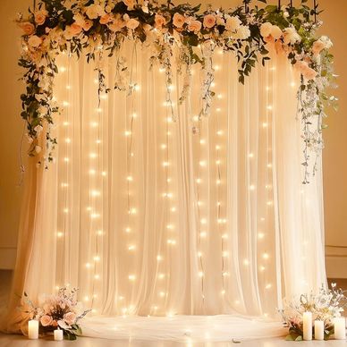 Sheer champagne panels and curtain lights