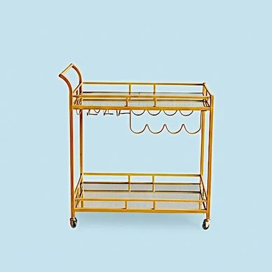 Gold bar cart with mirrored shelves