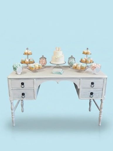 Vintage buffet painted in distressed white